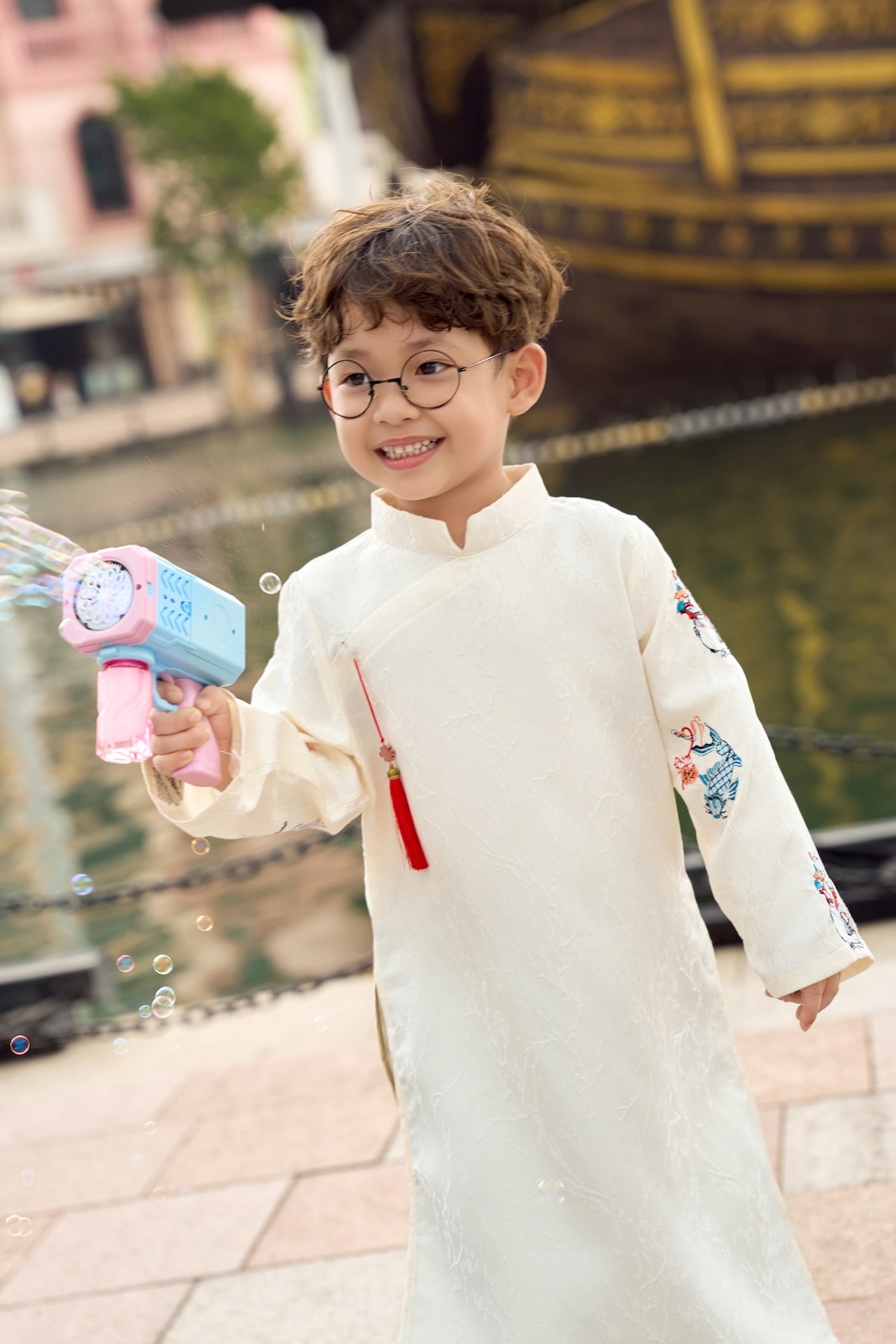 Set bé trai gồm áo dài trắng kem (không kèm quần)