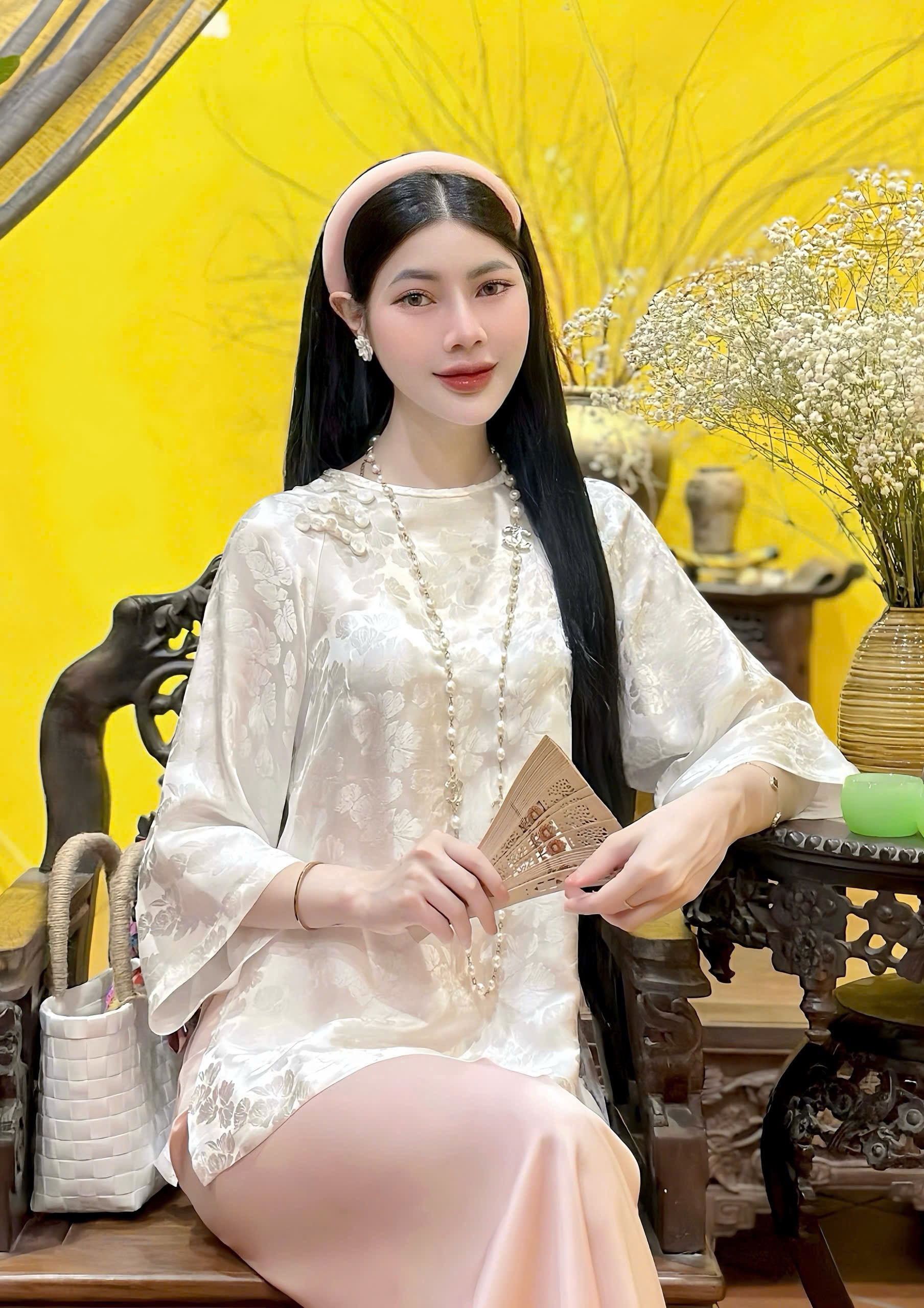 Set gồm áo bà ba chất tơ tầm cao cấp và quần